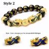 Feng Shui Obsidian Stone Beads Bracelet Wristband Gold Color Black Pixiu Wealth Good Luck Women Bracelet Men Women Unisex