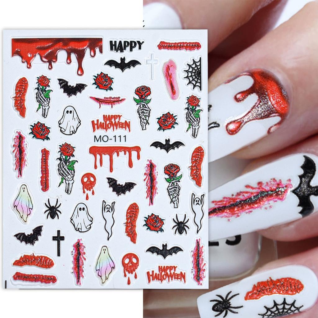 Halloween Nail Art Sticker, Pink Pumpkin Figure Skull Halloween Funny 3D Adhesive Nail Sticker