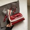 Vintage Burgundy Plush PU Splicing Crossbody Bag Autumn/Winter Women's Flip Bow Shoulder Bags Commuter Versatile Handbag