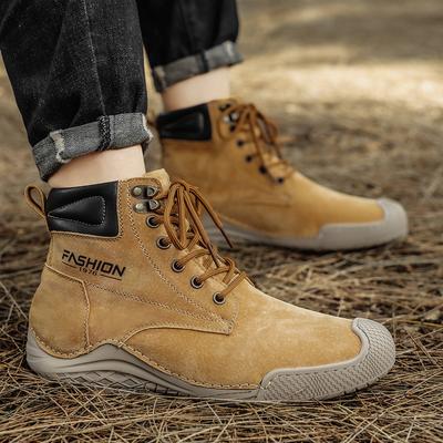 2024 Warm Plush Leather Casual Shoes for Men Handmade High Boots Comfort Ankle Boots Fashion Design Outdoor Hiking Cowboy Shoes