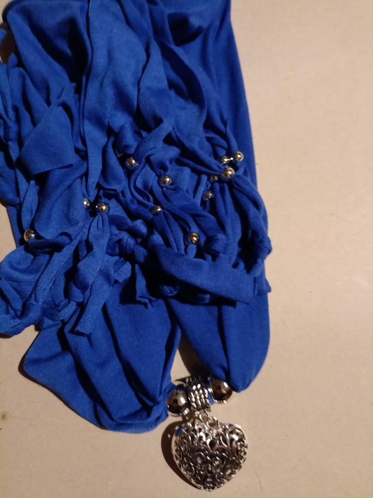 Wanted white and got it. Very pleasant thin knitwear. Like in the picture. The heart is big and like silver. Unusual. I love white scarves. This is not for winter or over a sweater..if in winter..