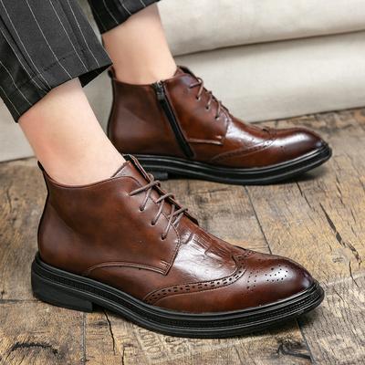 British Style Men's Chelsea Boots New Fashion Male Chelsea Boots Genuine Leather Elastic Strap Ankle Boots Business Dress Shoes
