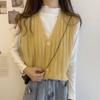 Knitted Vest, Short Top, Sleeveless Sweater Worn On Top A Small Woman with A Cardigan and A Camisole Shoulder