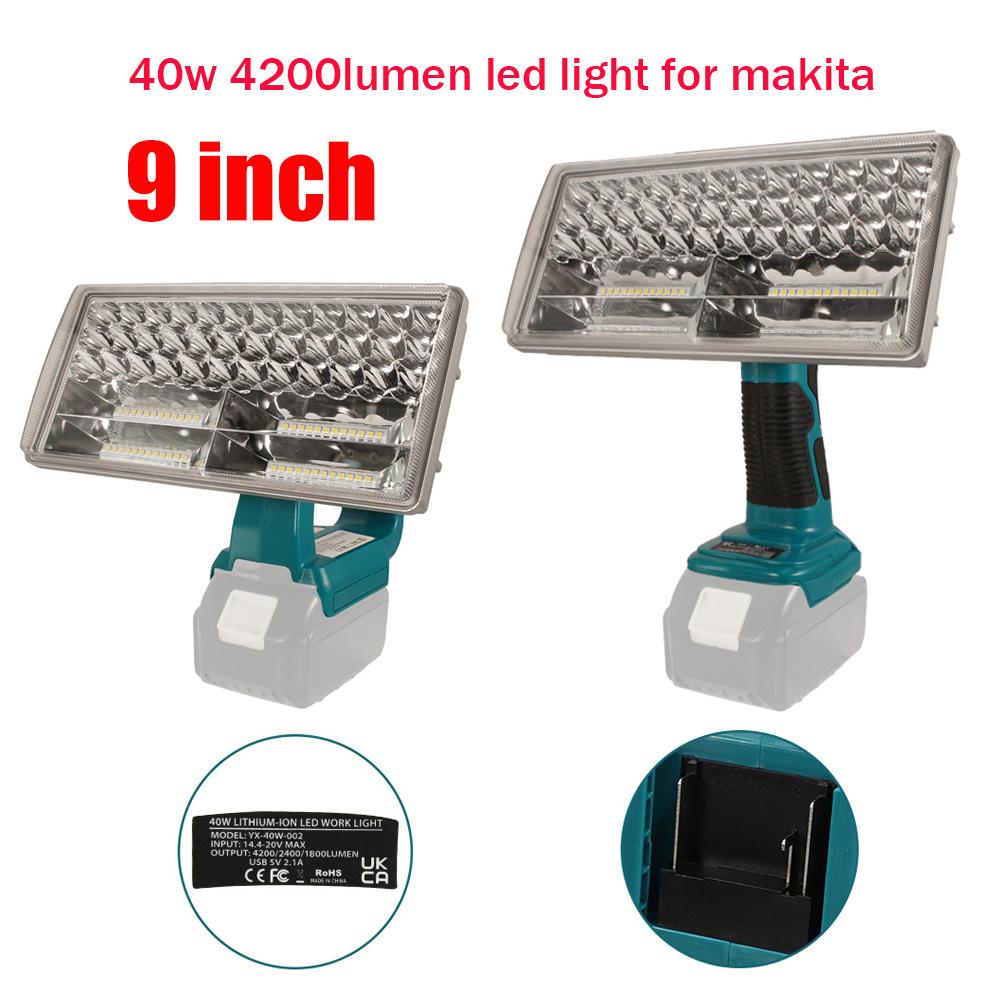 9 Inch 40W LED Lamp For Makita BL1430 BL1830 18V Lithium Battery LED Working Light Indoor Outdoor Spotlight Flashlight With USB
