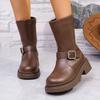 Fashion Women's Brown Platform Motorcycle Boots Buckle Strap Chunky Heels Combat Boots Woman Fashion Zipper PU Leather Ankle Botas Mujer