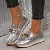 Fashion Women's Chain Decor Platform Loafers Fashion Gold Silver PU Leather Flats Shoes Woman Lightweight Slip On Casual Shoes Plus Size