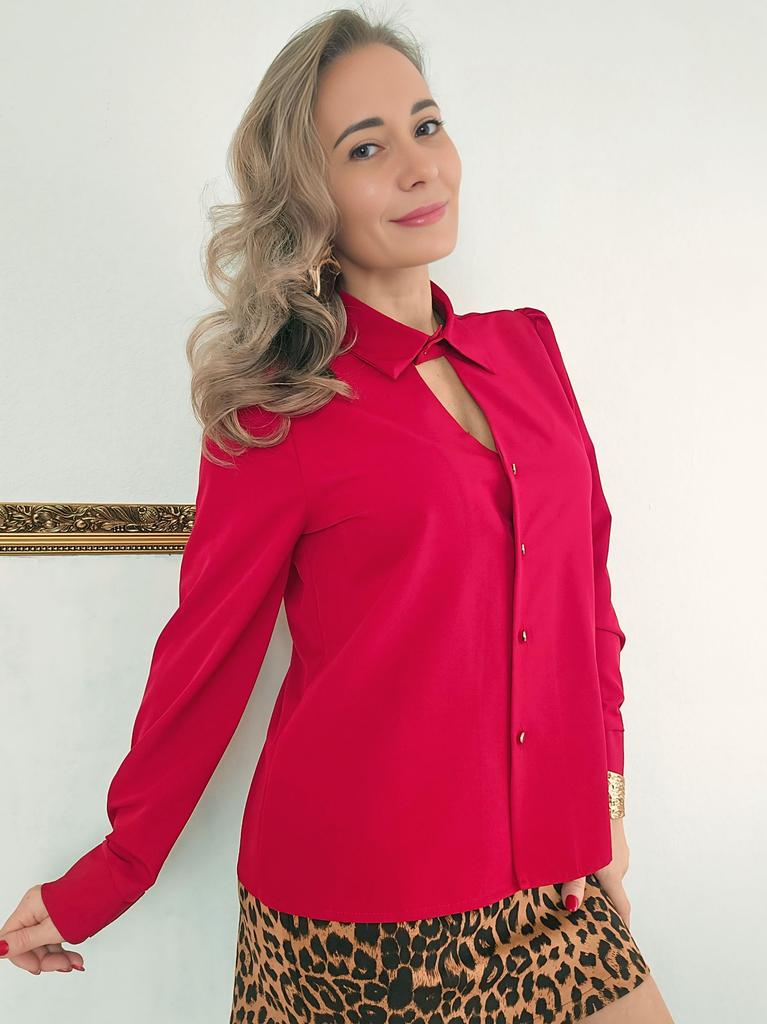 Solid Color Single Breasted Hollow Out Long Sleeved Women Shirt