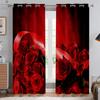 Red Rose Flower Curtains, Window Decoration, Retro Floral, 3D Printing, Custom, Bedroom, Living Room, Kitchen 2PCS