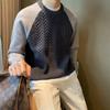 Men's Spring and Autumn Color Clashing Casual Knit Sweater Long Sleeve Round Neck Simple Tops