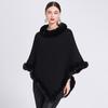 Fashion Plaid Stripes Faux Fur Pullover Cape Coat Women Autumn Winter Knit Poncho Cloak Wraps Travel Leisure Party Shawl