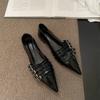 Shoes for Women Pumps Low Heel Pointed Toe Goth Sexy Elegant Woman Heeled White Loafers Slip On New In Belt Buckle