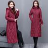 Middle Aged Women Winter Long Jacket Hooded Casual Thicken Warm Cotton Padded Coat Female Parkas Winter Overcoat