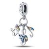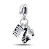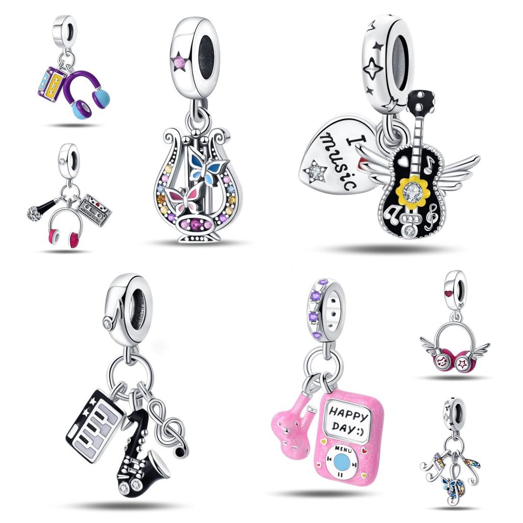 925 Silver Beaded Bracelet Headphones Tape Guitar Saxophone Pendant DIY Style Beaded Jewelry