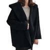 Fall Winter Women Coat Loose Thickened Warm Solid Color Loose Long Sleeve Open Stitch Pockets Mid Length Hooded Lady Overcoat Jacket