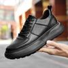 Fashion Men's Business Shoes Black Genuine Leather Soft Moccasin Shoes Comfortable Casual Shoes Men Autumn Solid Black Men Sneakers