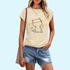 Women Fashion Cat Print T-shirt Sring&summer Casual Ladies Round Neck Short Sleeve Tee Shirt