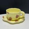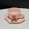 Japanese Hand Painted The Blue Sky and White Clouds Coffee Cup with Saucer Ceramic Handmade Tea Cup Saucer Set Cute Gift for Her