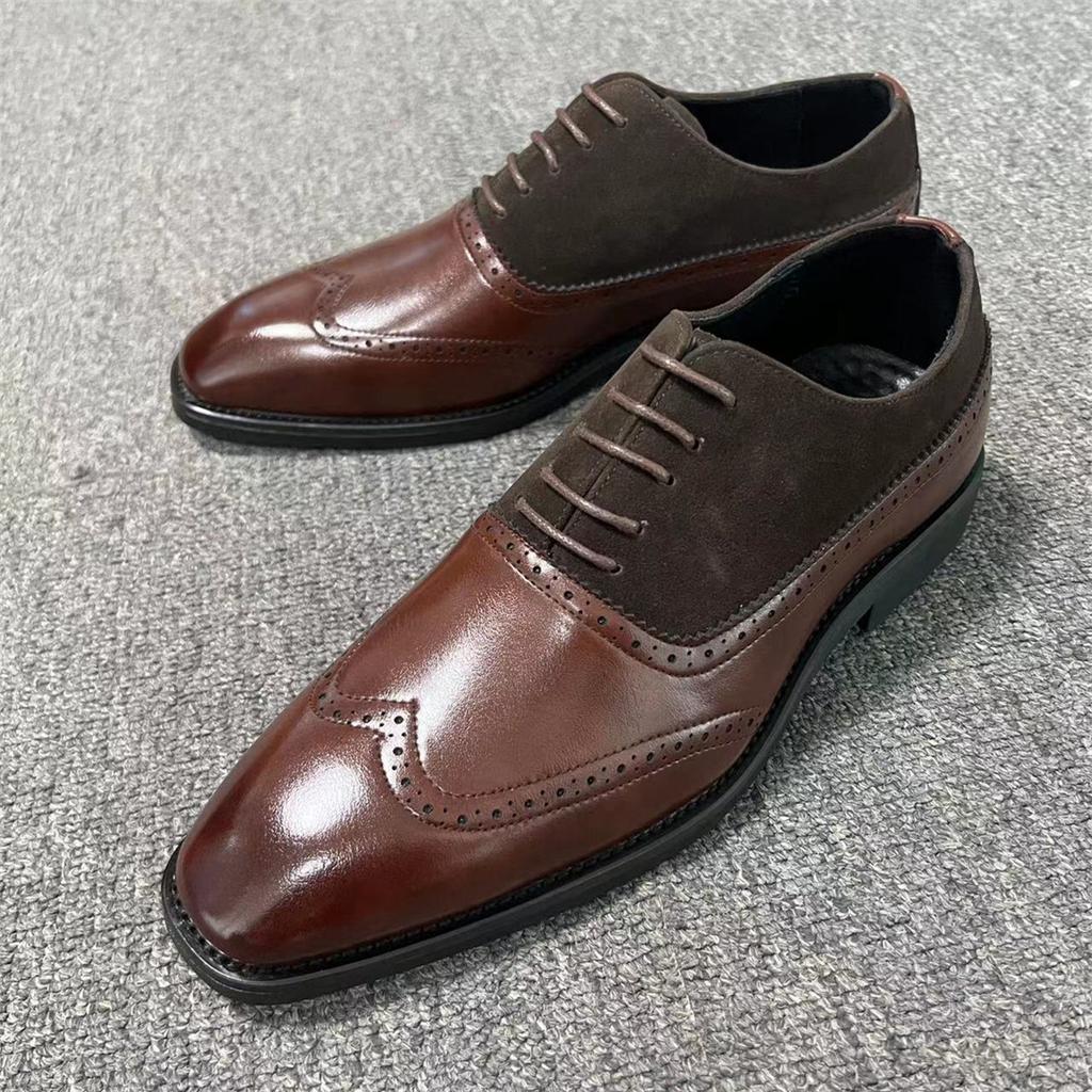 Fashion New Men Oxfords Shoes Brown Black Round Toe Lace-up Business Handmade Dress Shoes Size 38-46