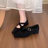 Fashion 2024 New Fashion Women's Shoes Cross Buckle Simple Flat Shoes Black and Red Punk Style Handmade Shoes Black Heels