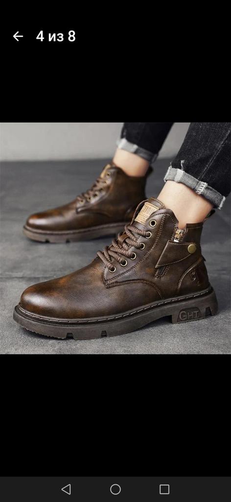 Fashion Men's Biker Boot Winter Outdoor Motorcycle Retro Style Leather Boots Man High Top Casual Shoes Trendy All-match Wear-resistant88