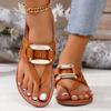 Fashion Ladies Shoes 2024 Hot Sale Pinch Toe Women's Sandals Summer Solft Sole Metal Decoration Buckle Solid Flat Large Size Sandals