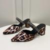 Fashion 2024 Fashion Shoes Female Closed Toe Women's Slippers Autumn Pointed Toe Leopard Print Slingbacks Shallow Chunky Heels Shoes