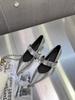 Fashion Pointed Toe Women Mules Ballet Dance Loafers 2024 New Arrivals Black Brown Silver Metal Chain Casual Sandals Belt Buckle