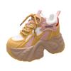 Fashion 10CM New 2024 Spring Women Breathable Mesh Chunky Sneakers High Platform Casual Shoes Lace-up Summer Sports Leather Shoes Woman