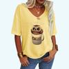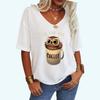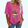 Women Fashion Cat Print Tee Shirt Casual V Neck Top Loose Short Sleeve T-shirt