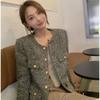 Coarse Tweed Small Fragrant Jacket for Women's Single Breasted Short Top Suit Jacket Female Wool Coat Lady Pocket Outwear Black