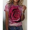 Men's and Women's Short Sleeved T-shirt, Rose 3D Printing, Fashionable Harajuku Round Neck Shirt, 6XL Men's and Women's T-shirt