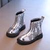 New Spring Autumn Girl's Ankle Boot Sequins Versatile Kids School Black Boots Fashion Causal Children Patchwork Leather Boots