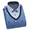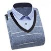 Autumn and Winter Velvet Thickened Fake Two Men's Long-sleeved Shirt Collar Pullover Sweater Casual Warm Knitted Sweater