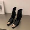 Fashion Women Square Toe Chelsea Boots Ankle Mid Heels Shoes 2024 Winter Designer New Walking Shoes Pumps Sexy Trend Dress Mujer Zapatos