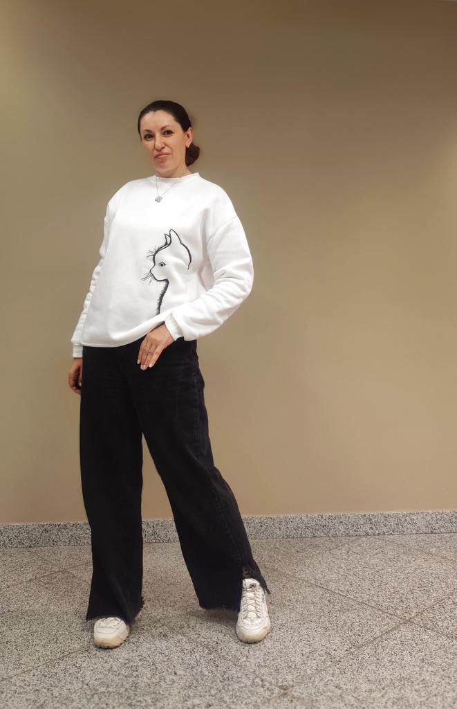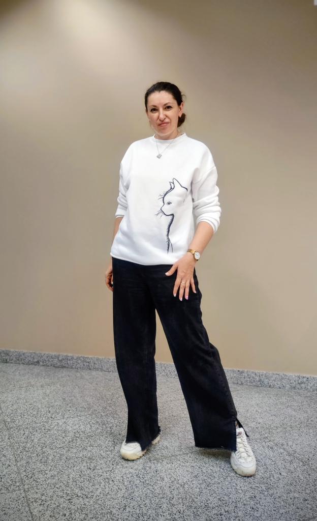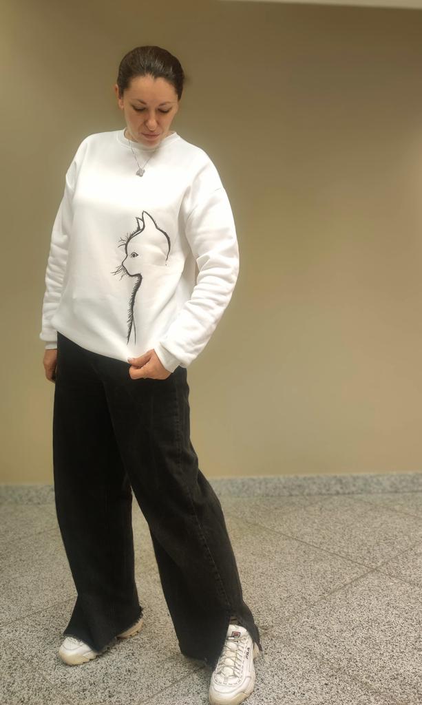 Synthetic, warm. To be oversized - you probably need to take the largest size, mine turned out just right.