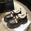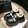 Black Velvet Platform Small Leather Shoes Women'S British Style Autumn And Winter One-Pedal Loafers Mary Jane Shoes