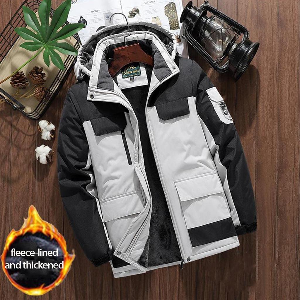 Men's Outdoor Windproof Waterproof Hooded Jacket - Thick Velvet, Large Size, Warm and Cold-Proof