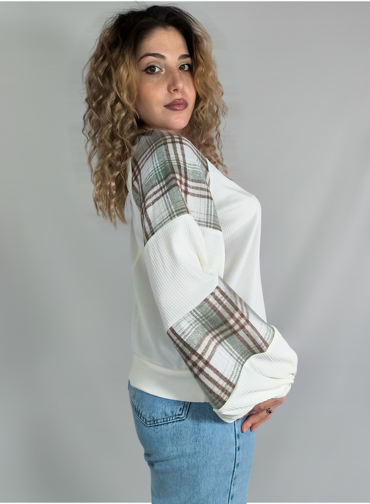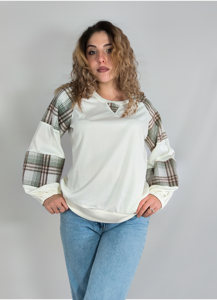 Women's Plus Size Casual Top Loose Plaid Colorblocking Round Neck Sweatshirt Long Sleeve Pullover