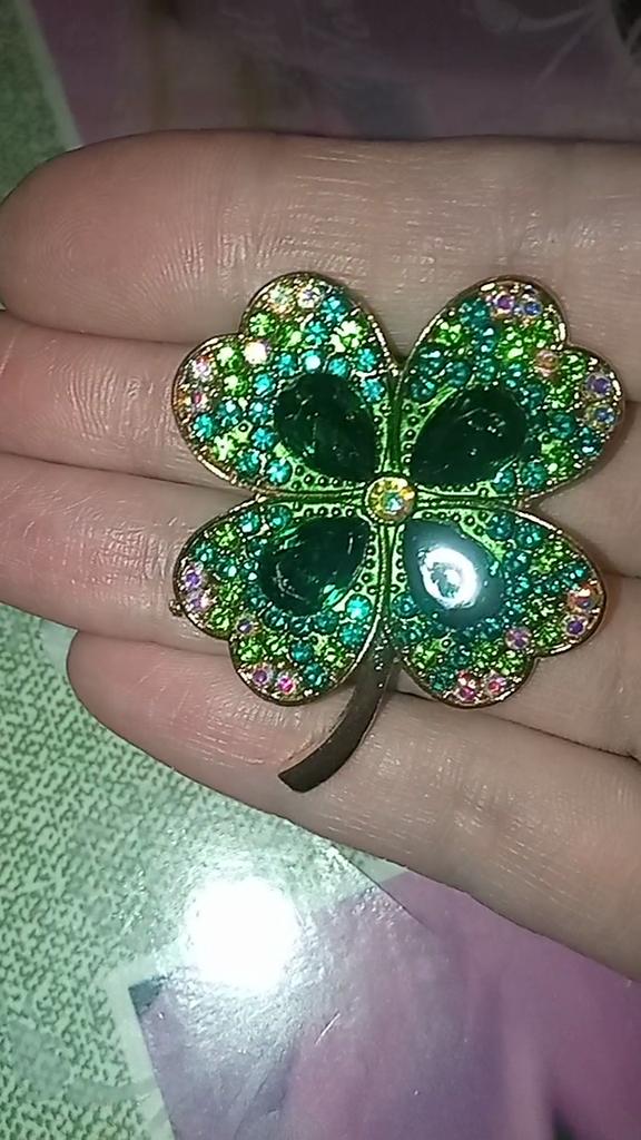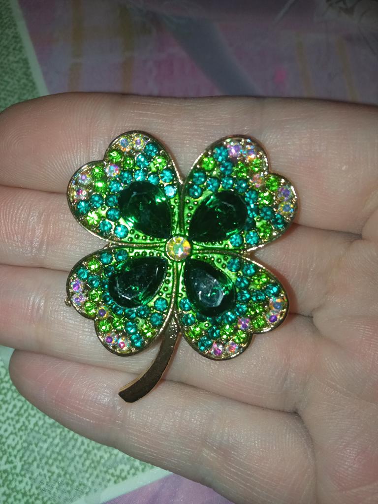 Fashion Rhinestone Clover Brooches Women Clothing Coat Jewelry Party Accessories