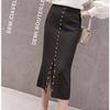 Women Knitted Skirt High Waist Front Slit Knee Length Pencil Skirt Spring Autumn Office Skirts Womens