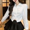 Women's Autumn Solid Colour Cardigan Lapel Long Sleeve Pleated Button Shirt