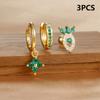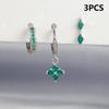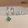 3PCS Green Zircon Flower Hoop Earrings Women Tiny Stainless Steel Round Circle Cartilage Piercing Earring Fashion Jewelry Sets