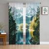 Winter Snow Mountain Morning Scenery House Tulle Curtains Living Room Bedroom Kitchen Decor Chiffon Sheer Voile Window Curtains