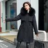 New Plush Thickened Jacket for Women's Winter Coat Large Wool Collar Jacket Medium Length Waistband Jacket