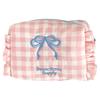 Plaid Makeup Bag Pleated Toiletry Bag Aesthetic Makeup Storage Bag Large Capacity Embroidered Bow Cosmetic Bag for Women Girls