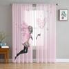 Cartoon Butterfly Flower Fairy Girl Pink White Chiffon Sheer Curtains Living Room Bedroom Decoration Window Voiles Tulle Curtain