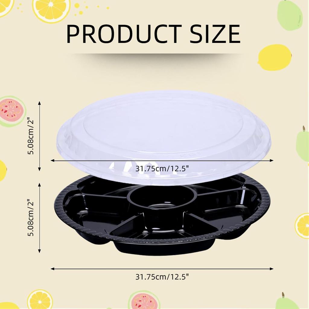 Plastic Appetizer Serving Tray with Lid Round 12.5 Inch Tray with Lid Disposable Serving Fruit Veggie Tray for Party