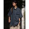 Summer Men'S New Style Distressed Washed Retro Short Sleeved Denim Shirt Street Trendy Workwear Military Style Shirt Top