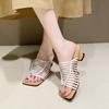 Women's Shoes 2024 Summer New Fashion Open Toe Solid Color Outdoor Casual Mid-heeled High Heels Roman Women's Beach Slippers