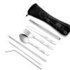 7Pcs/3Pcs Set Dinnerware Portable Printed Knifes Fork Spoon Stainless Steel Family Camping Steak Cutlery Tableware with Bag
